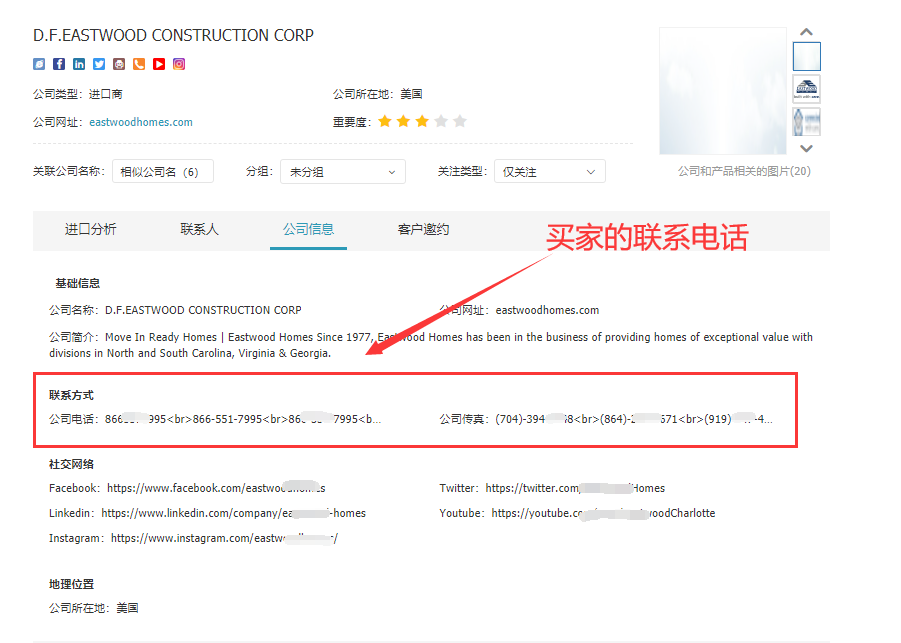 dcbox小金库不仅给予买家的决策人邮箱、联系电话,还给予买家的facebook,skype,twitter等多种社交媒体,可以直接点进去关注互动!