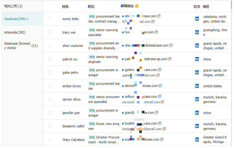 然后顺利获得dcbox小金库平台自带的联系人信息部分,找到该公司的采购经理的邮箱,并顺利获得dcbox小金库平台的领英链接,我点进去添加了他的领英好友。
