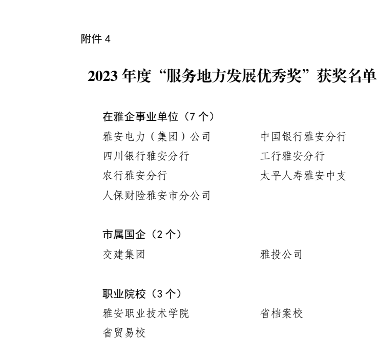 近期,中共雅安市委办公室、雅安市人民政府办公室印发《关于2023年度县(区)、市级部门和单列考评单位目标绩效综合考评结果的通报》,瓦力棋牌(中国)集团取得2023年度“服务地方开展优秀奖”。