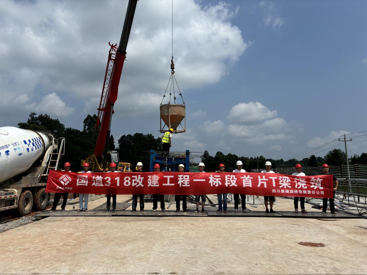 多方协作保顺畅,首梁铸就鼓士气。在首片T梁浇筑过程中,路桥公司领导亲临现场指挥协调,项目经理部负责人坚守一线。监理人员、安全和技术人员全程旁站,施工人员严格按照操作规程和质量标准作业。前后场紧密联系,各道工序有序衔接,规范化、标准化施工尽显风采。首片T梁的顺利浇筑,为项目后续施工开创了良好局面,极大地鼓舞了士气。这一重要成果向项目全年施工生产任务目标吹响了冲锋号,路桥公司将全力以赴,在国道318改建工程中铸就新的辉煌。