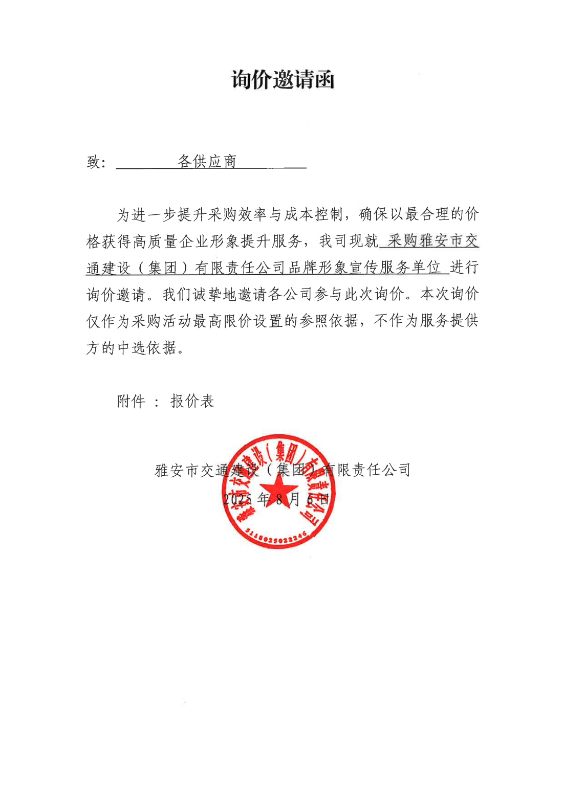 关于雅安市公共交通集团有限公司食堂农产品配送服务采购限价的询价函